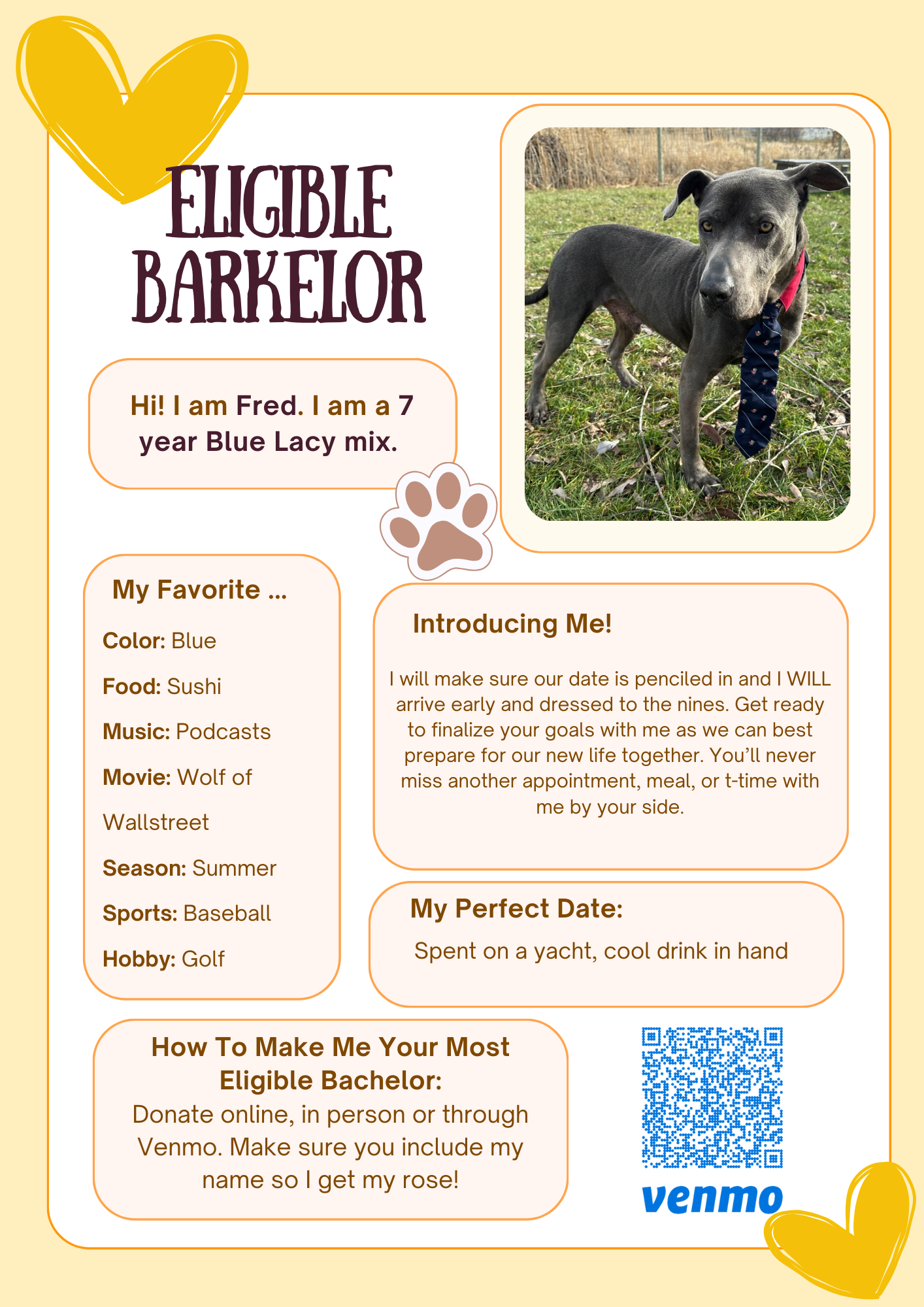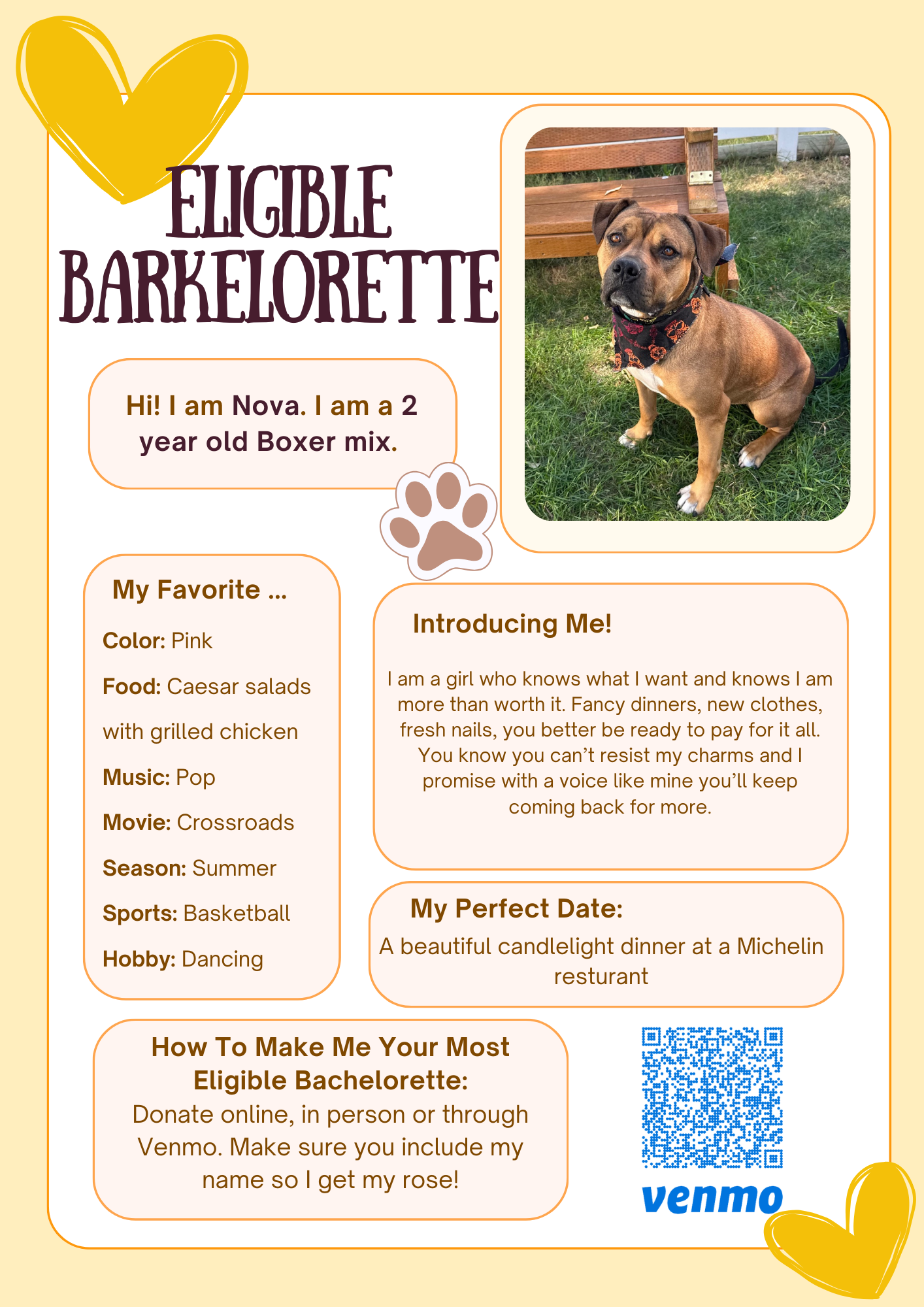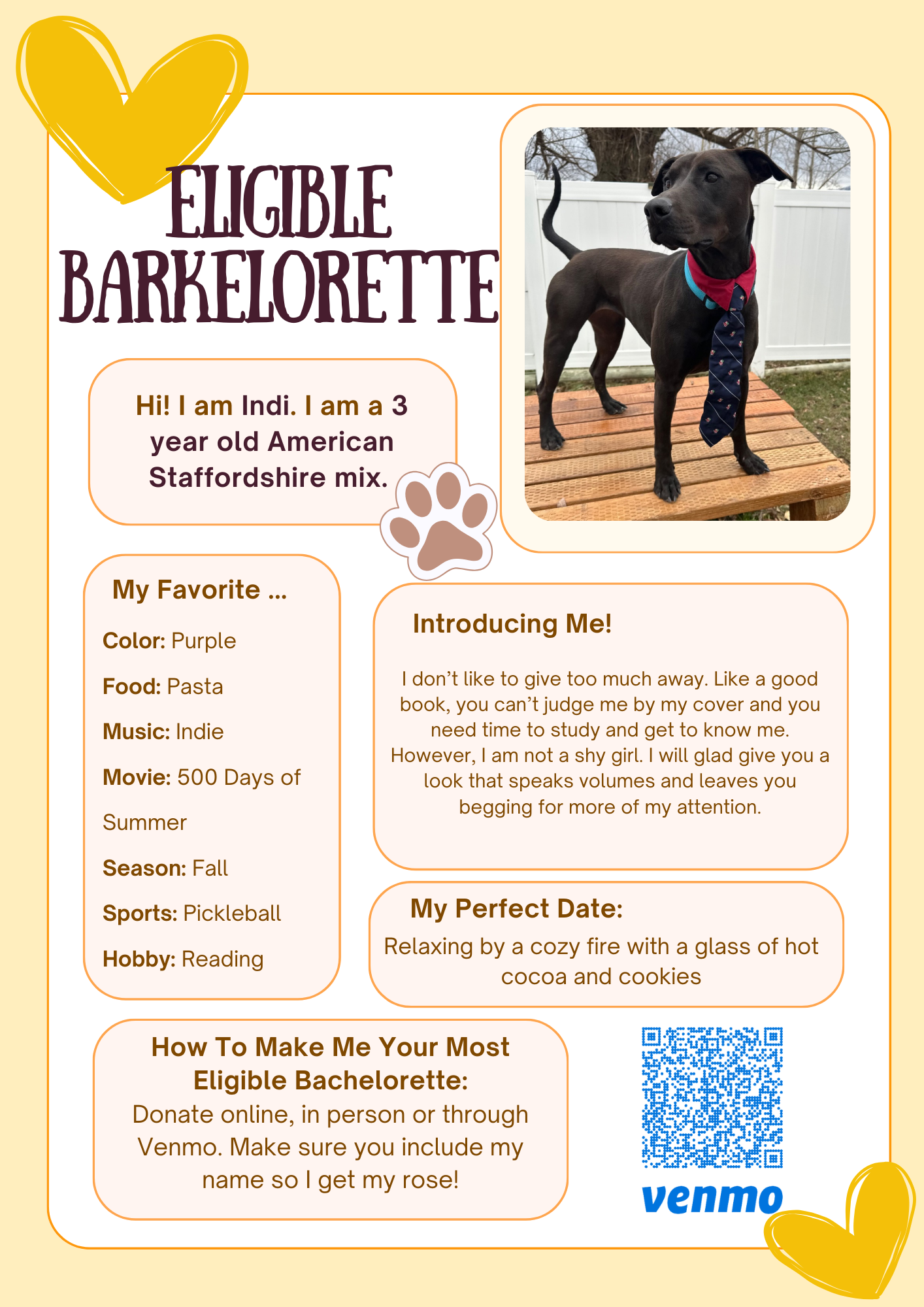 Meet our incredible Barkelorettes, each hoping to steal your heart and earn your rose. Scroll all the way down to get to know these lovable contestants and decide who deserves the final rose. Every $5 donation counts as one rose, and the Barkelorette with the most roses will receive a reduced adoption fee. Winner announced February 17th.